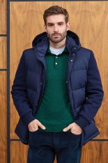 Пуховик с капюшоном из комбинации двух тканей