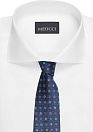 Темно-синий галстук с цветным орнаментом из стопроцентного шелка.