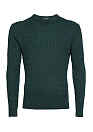 Джемпер темно-зеленого цвета с дизайном в виде плетеных кос из шерсти мериноса Extra Fine - мягкий, тёплый и уютный. Мериносовая шерсть, состригаемая с особой, специально выведенной породы тонкорунных овец - очень приятная на ощупь, не раздражает кожу и не электризуется. Благодаря терморегулирующим свойствам - изделия из мериносовой породы овец хорошо согревают и сохраняют температуру тела в любую погоду.