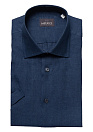 Льняная рубашка темно-синяя с коротким рукавом