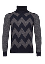 Вязаный свитер из шерсти мериноса. Темно-синий орнамент в сочетании с меланжевым добавляет в стиль индивидуальность. Мягкость и тепло шерсти мериноса обеспечивают комфорт в холодные дни.