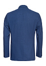 Костюм синий из тонкой шерсти. Полуприталенный силуэт Milano. Технология изготовления пиджака «полуканвас» – обеспечивает естественность силуэта, делая его визуально стройнее. Пуговицы пришиты  невидимым с изнаночной стороны швом – 2 по борту, по 4 на рукавах. Лацкан классический. Карманы: 1 нагрудный прорезной с листочкой, 2 боковых прорезных, 4 внутренних кармана. 2 шлицы по спинке. Облегченный полуподклад пиджака соответствует модным тенденциям и позволяет оценить высокий уровень оформления внутренних швов. Ткань полуподклада на пиджаке однотонная, не электризуется, не вызывает раздражения.