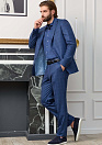Легкий костюм синий в клетку из тонкой шерстяной ткани от итальянского производителя Ermenegildo Zegna. Полуприталенный силуэт Milano. Технология изготовления пиджака обеспечивает естественность силуэта, делая его визуально стройнее, пиджак естественно облегает тело, повторяя его движения. Пуговицы пришиты невидимым с изнаночной стороны швом – 2 по борту, по 4 на рукавах. Лацкан классический. Карманы: 1 нагрудный прорезной с листочкой, 2 боковых прорезных с клапанами, 4 внутренних кармана. 2 шлицы по спинке. Ткань подклада на пиджаке из однотонной вискозы, не электризуется, не вызывает раздражения. Классические брюки, средней посадки.
