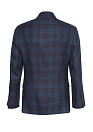 Костюм синий в клетку из смеси льна, шерсти и шелка. ERMENEGILDO ZEGNA - Италия. Лен обладает антибактериальными и гигроскопичными свойствами, шерсть - терморегулирующими, шелк придает костюму легкость, яркость и глянцевый блеск.  Полуприталенный силуэт Milano. Технология изготовления пиджака «полуканвас» – обеспечивает естественность силуэта, делая его визуально стройнее. Пуговицы пришиты  невидимым с изнаночной стороны швом – 2 по борту, по 4 на рукавах. Лацкан классический. Карманы: 1 нагрудный прорезной с листочкой, 2 боковых прорезных с клапанами, 4 внутренних кармана. 2 шлицы по спинке. Облегченный полуподклад пиджака соответствует модным тенденциям и позволяет оценить высокий уровень оформления внутренних швов. Ткань полуподклада на пиджаке однотонная, не электризуется, не вызывает раздражения.