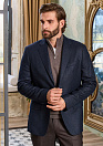 Пиджак темно-синий с твидовым плетением "елочка" из шерсти с добавлением кашемира. Шерсть обладает высокой воздухопроницаемостью и хорошо отводит влагу от тела, кашемир придает пиджаку легкость и мягкость. Производитель ткани итальянский  Ermenegildo Zegna. Технология изготовления пиджака «полуканвас» – обеспечивает естественность силуэта, делая его визуально стройнее. Полуприталенный силуэт Milano. Пуговицы пришиты невидимым с изнаночной стороны швом – 2 по борту, по 4 на рукавах. Лацкан классический. Карманы: 1 нагрудный прорезной с листочкой, 2 боковых прорезных с клапанами,  4 внутренних кармана. 2 шлицы по спинке. Подкладка на пиджаке из вискозы, не электризуется, не вызывает раздражения.