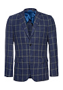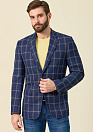 Пиджак синий в клетку из смеси льна и шерсти