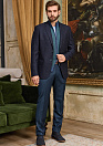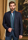 Пиджак темно-синий в мелкую клетку из шерсти с добавлением кашемира. Шерсть обладает высокой воздухопроницаемостью и хорошо отводит влагу от тела, кашемир придает пиджаку легкость и мягкость.  Производитель ткани итальянский бренд DRAGO. Технология изготовления пиджака «полуканвас» – обеспечивает естественность силуэта, делая его визуально стройнее. Полуприталенный силуэт Milano. Пуговицы пришиты невидимым с изнаночной стороны швом – 2 по борту, по 4 на рукавах. Лацкан классический. Карманы: 1 нагрудный прорезной с листочкой, 2 боковых прорезных с клапанами,  4 внутренних кармана. 2 шлицы по спинке. Подкладка на пиджаке из однотонной вискозы, не электризуется, не вызывает раздражения.