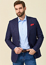 Пиджак в сине-бордовую клетку из смеси льна, шерсти и шелка. Лен обладает антибактериальными и гигроскопичными свойствами, шерсть - терморегулирующими, шелк придает изделию лёгкость, яркость и глянцевый блеск. Технология изготовления пиджака «полуканвас» – обеспечивает естественность силуэта, делая его визуально стройнее. Полуприталенный силуэт Milano. Пуговицы пришиты невидимым с изнаночной стороны швом – 2 по борту, по 4 на рукавах. Лацкан классический. Карманы: 1 нагрудный прорезной с листочкой, 2 боковых прорезных, 2 внутренних. 2 шлицы по спинке. Ткань подклада на пиджаке однотонная, не электризуется, не вызывает раздражения.