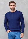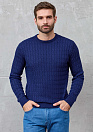 Синий джемпер с круглой горловиной и фактурным орнаментом в виде сплетенных кос.