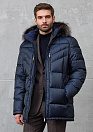 Стеганный пуховик средней длины с капюшоном с меховой опушкой