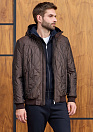 Пуховик с капюшоном из комбинации двух тканей коричневый