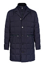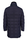 Удлиненный стеганый пуховик (пальто) в классическом стиле со съемной манишкой и меховым воротником - стильный выбор для мужчин, которые ценят комфорт и актуальные тренды. Длина по спинке: (размер 50) 95 см. Застежка, манишка, воротник: Воротник на пуховике отложной пиджачного типа, застежка на пуговицы. Манишка крепится к пуховику на молнию. Накладной воротник манишки из меха кролика крепится на молнию и пуговицы. Карманы: Четыре внешних кармана: два с клапанами на молниях (клапаны можно убрать внутрь карманов), два на магнитной застежке. Два внутренних кармана. Утеплитель: Экопух и Valtherm®. Дополнительные элементы: На стойке воротника и на клапане кармана расположены фирменные элементы в виде вышивки. Отделка из алькантары. Понизу спинки две шлицы, застегивающиеся на молнии.