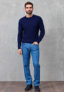 Джемпер темно-синего цвета с круглой горловиной и фактурным орнаментом в виде сплетенных кос.
