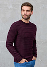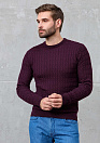 Джемпер с круглой горловиной и фактурным орнаментом в виде сплетенных кос винного цвета.