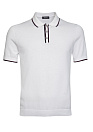 Поло с застежкой на пуговицы из хлопка Пима (Pima cotton). Ткань очень мягкая и приятная на ощупь, легкая, прочная и устойчива к сминанию. Канты синего и бордового цвета на манжетах, воротнике и вдоль застежки добавляют оригинальность белому поло.