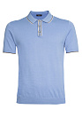 Поло с воротником на пуговицах, голубого цвета с белой и коричневой полосками на воротнике и рукавах. Трикотаж из премиального хлопка Пима. Ткань очень нежная, приятная на ощупь, при этом достаточно прочная и гипоаллергенная.