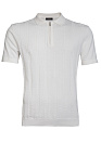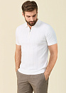 Поло с воротником на молнии белого цвета с фактурным орнаментом в виде плетеных кос. Премиальная ткань из смеси хлопка, шелка и льна.