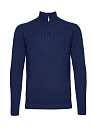 Джемпер насыщенного темно-синего цвета из шерсти мериноса с добавлением кашемира, очень теплый и приятный на ощупь, не раздражает кожу и не электризуется. Шерсть придает гигроскопичность и эластичность, кашемир - гладкую поверхность, мягкость и благородство. Воротник с застежкой на молнию.