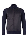 Мужская трикотажная куртка темно-синего цвета с застежкой на молнию. Изготовлен из 100% сверхтонкой мериносовой шерсти, обеспечивающей невероятный комфорт. Элегантная вставка из алькантары делает кардиган универсальным элементом вашего гардероба: в холодное время года его можно носить под пальто или пуховик, а в теплое - как легкую куртку поверх трикотажа или рубашки. Выберите качество и стиль для своего повседневного образа.