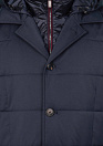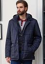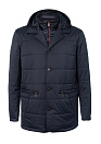Легкая утепленная куртка с манишкой и капюшоном. Длина по спинке в размере 50 - 80 см. Цвет темно-синий. Застежка на пуговицы. Воротник отложной - пиджачного типа. Манишка с воротником-стойкой и отстегивающимся на кнопках капюшоном крепится к куртке на молнию. Планка крепления капюшона убирается в воротник манишки, сохраняя аккуратный внешний вид. Глубина и объем капюшона регулируются. Без манишки - куртка приобретает более классический вид. 4 внешних кармана: 2 с клапанами на молниях, два на магнитной застежке. Фирменная вышивка расположена на клапане кармана. 2 внутренних кармана на молниях.Ткань верха защищает от ветра, влаги и холода. Благодаря особым свойствам структуры волокон, способным отводить влагу - между курткой и телом поддерживается сухой микроклимат. Подкладка из износостойкой ткани с орнаментом. Утеплитель: Valtherm® - теплоизоляционный материал, сохраняющий температуру тела.