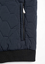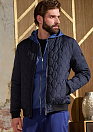 Утепленная стеганая куртка-бомбер. Длина по спинке в размере 50: 71,5 см. Цвет: темно-синий. Застежка на металлическую молнию с двумя бегунками. Трикотажные: воротник, манжеты рукавов и пояс.2 наружных кармана и 2 внутренних кармана на молнии. Ткань верха защищает от ветра, влаги и холода. Благодаря особым свойствам структуры волокон, способным отводить влагу - между курткой и телом поддерживается сухой микроклимат. Отделка из экокожи. Подкладка из износостойкой ткани с орнаментом. Утеплитель: Valtherm® - современный теплоизоляционный материал сохраняющий температуру тела.