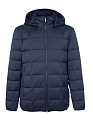 Стеганый легкий пуховик темно-синего цвета с капюшоном. Длина по спинке в размере 50: 76 см. Застежка на металлическую молнию с двумя бегунками. Воротник-стойка, внутренняя сторона воротника из мягкой микроворсовой ткани. Съемный капюшон на кнопках, планка убирается в воротник, пата регулирует глубину капюшона, кулиска регулирует объем по краю. 2 внешних и 2 внутренних кармана на молнии. Линии низа прямая. Ткань верха с эффектом стрейч. Благодаря особым свойствам структуры волокон, способным отводить влагу - между курткой и телом поддерживается сухой микроклимат. Низ куртки и рукавов окантован стрейч-тесьмой. В верхней части полочки расположена фирменная вышивка. На спинке настрочная деталь из алькантары с фирменной вышивкой. Подкладка из износостойкой ткани. Утеплитель экопух - инновационный материал, обладающий высокой теплоемкостью.