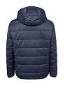 Стеганый легкий пуховик с капюшоном темно-синего цвета