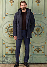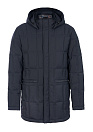 Пуховик темно-синий с капюшоном и меховой опушкой