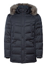 Пуховик темно-синий с капюшоном и меховой опушкой