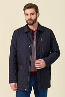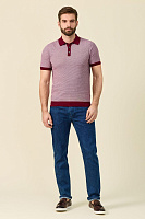 Состав лука: Утепленная стеганая куртка; поло бордовое в мелкую полоску из хлопка Пима; дlжинсы классического кроя средней ширины.